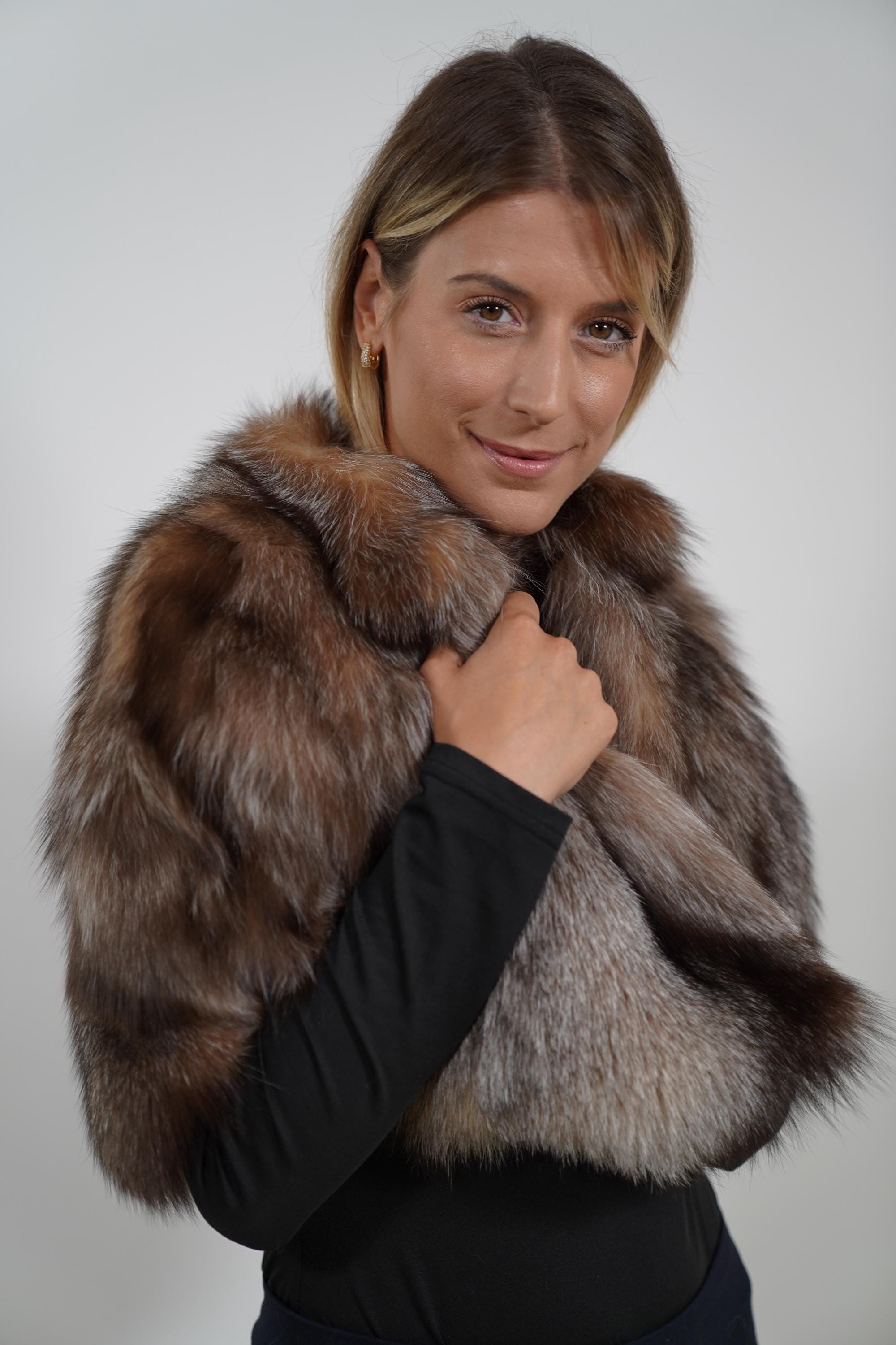 Elevate your outfit with the timeless elegance of this luxurious black fox fur stole. Expertly handcrafted in our Greek workshop using high-quality, genuine fox fur, this piece is soft, warm, and effortlessly chic.