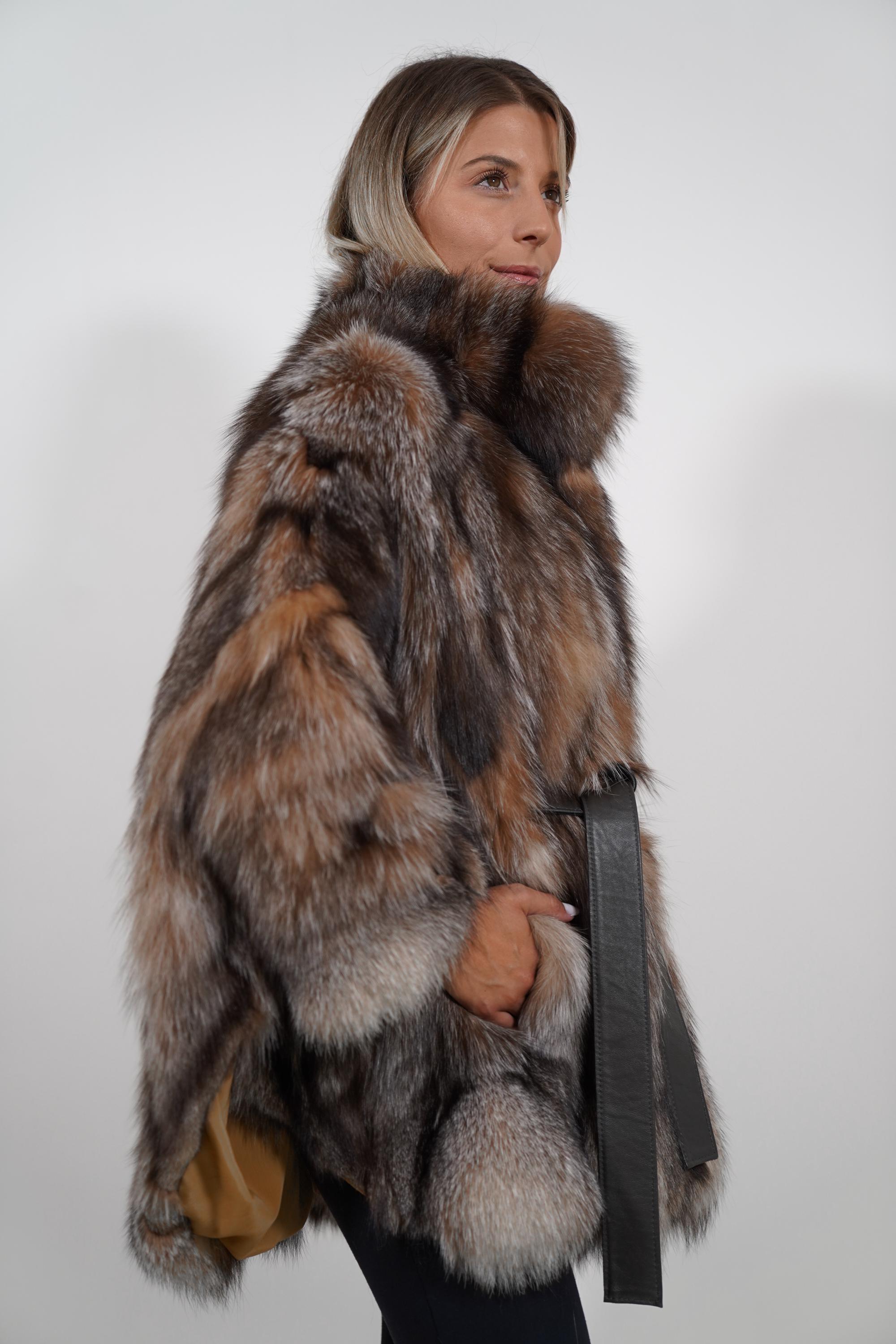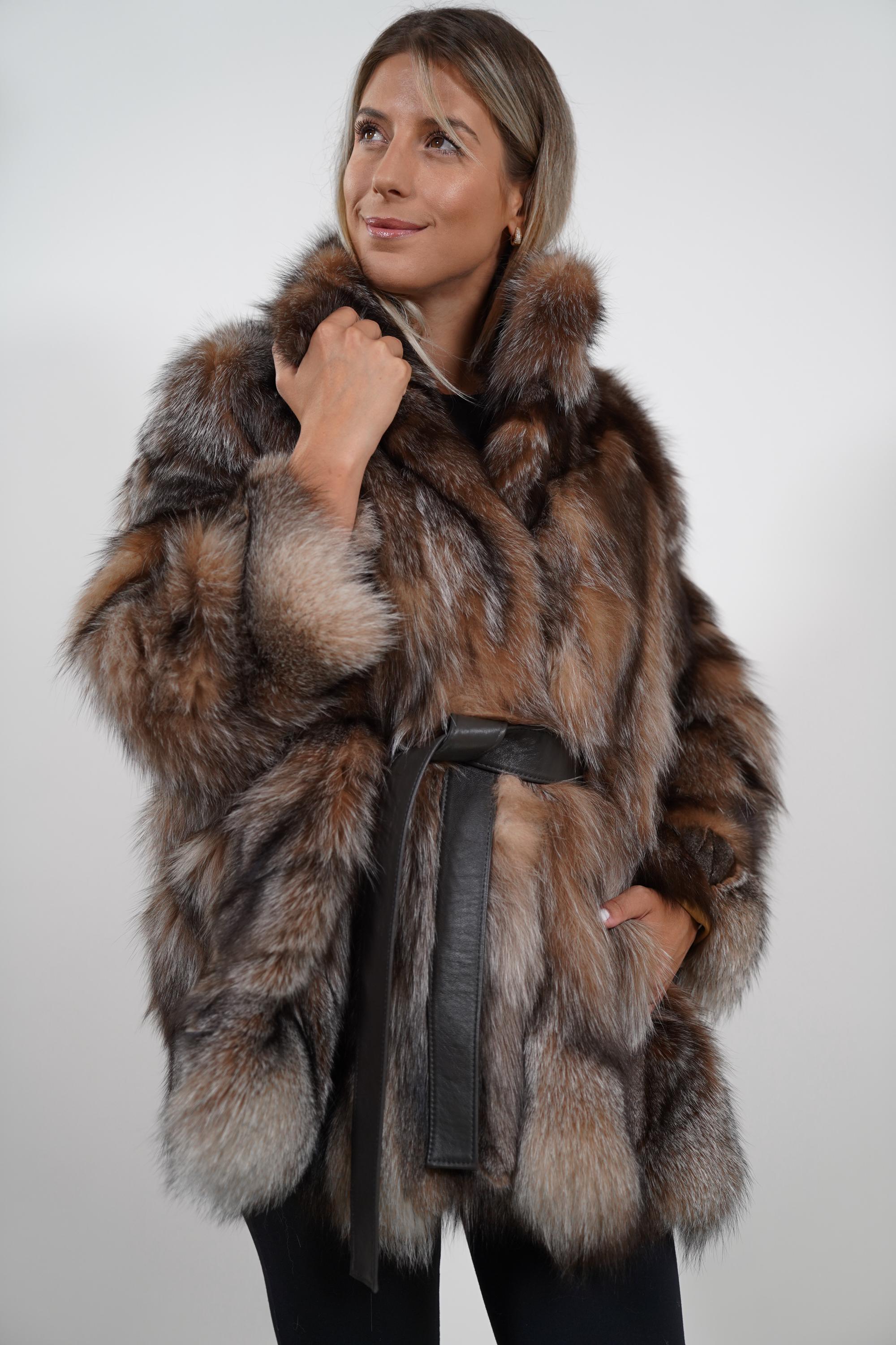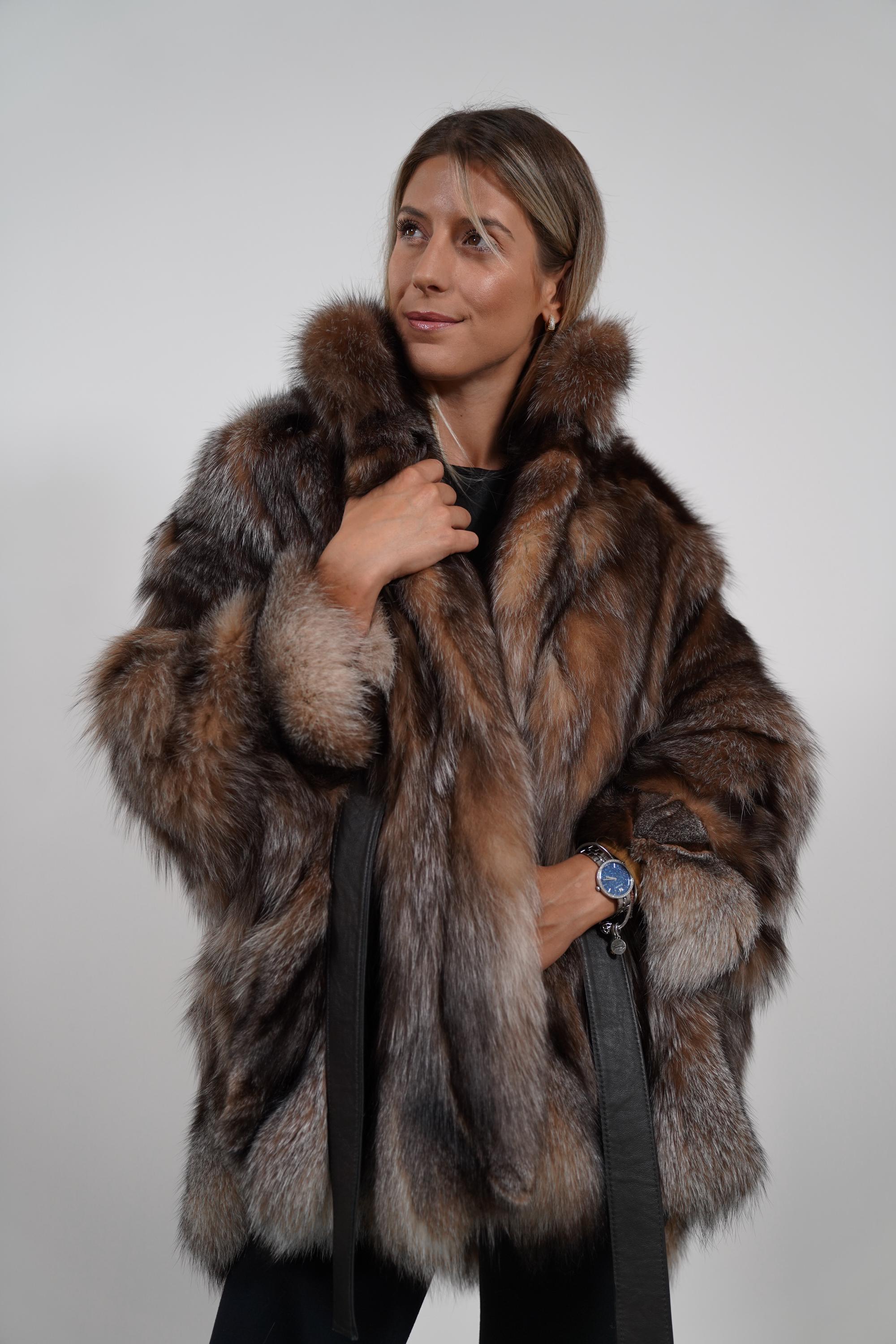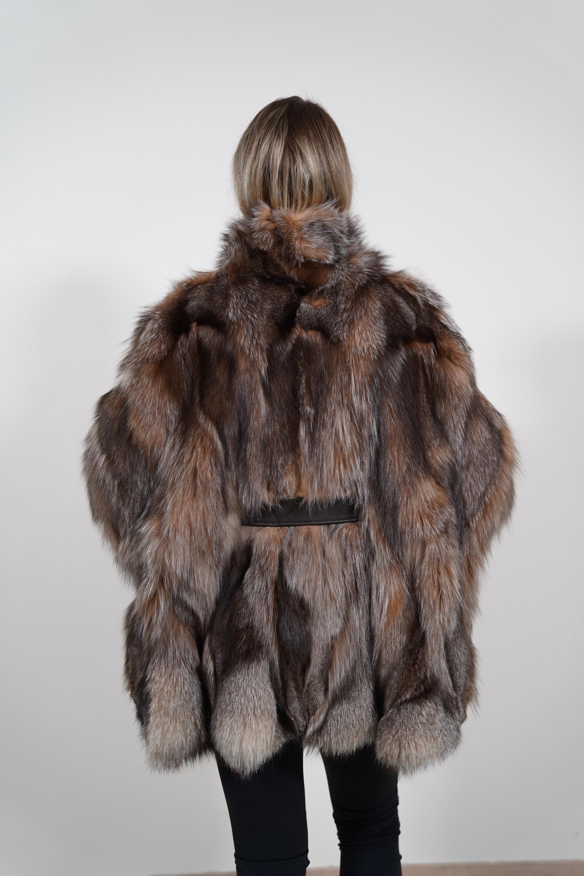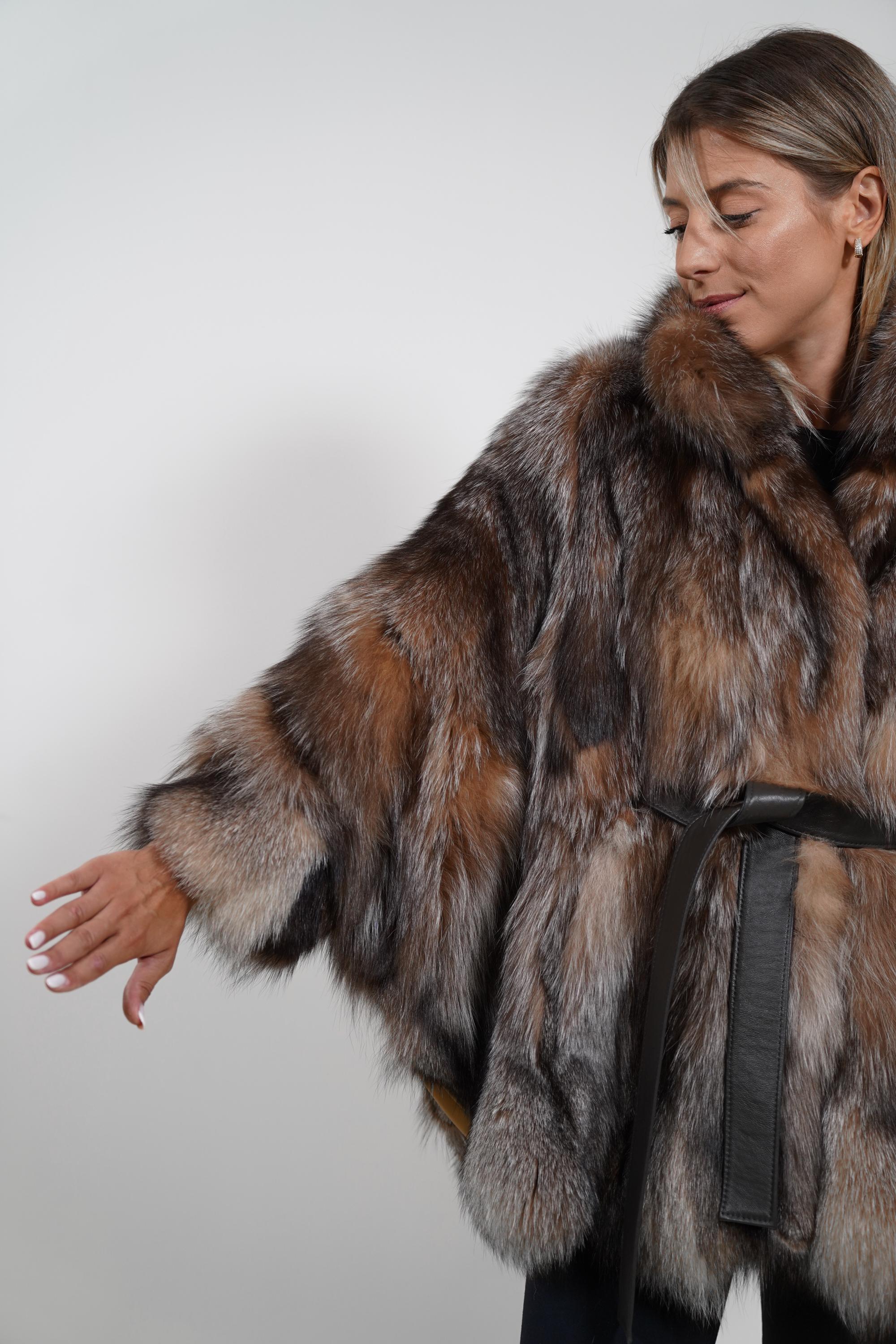 Luxury Crystal Fox Fur Cape – Handmade in Greece